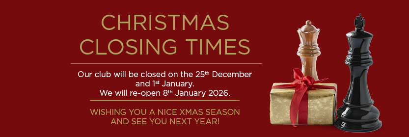 We are closed on the 25th December and 1st January. Club will re-open 8th January.